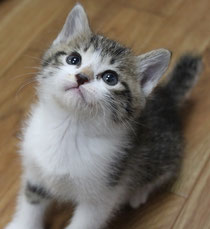 2013年8月に保護猫(3兄弟のうちの1匹)を譲ってもらいました。写真は生後2ヶ月頃でとりわけよく撮れています。性格はおっとりして優しく細やかに気遣いする子です。食べ物に好き嫌いなく、ネコにしては珍しく、ネコ用フードは何でも秒で食べてくれるので助かります。